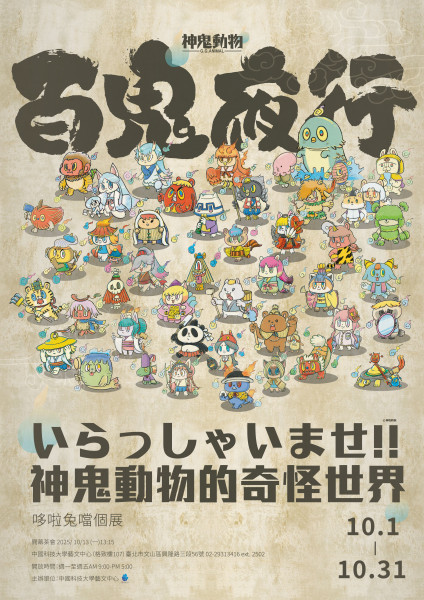 【台北】《歡迎光臨神鬼動物的奇怪世界:哆啦兔噹個展》 地點:中國科技大學藝文中心 日期:2025-10-01 ~ 2025-10-31 網址:http://yii.tw/events/41329