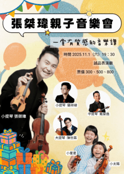 【台北】張桀瑋親子音樂會【一堂有質感的音樂課】 地點:誠品表演廳 日期:2025-11-01 網址:http://yii.tw/events/41570