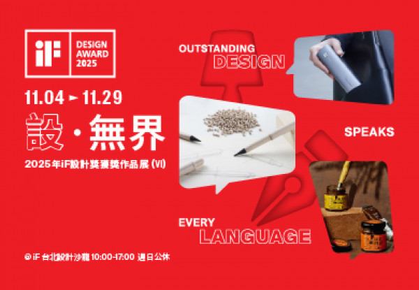 【台北】設 · 無界 | 2025 年 iF 設計獎獲獎作品展 (VI) 地點:松山文創園區 日期:2025-11-04 ~ 2025-11-29 網址:http://yii.tw/events/41648